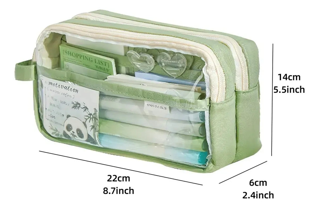 La Canopla Cartuchera Escolar de Levys Bazar es la solución perfecta para mantener organizados todos los útiles escolares y de viaje. Con un diseño funcional y un atractivo color verde, esta cartuchera cuenta con cinco compartimentos que facilitan el acceso rápido a lápices, rotuladores y otros artículos esenciales. Fabricada en PVC resistente, esta cartuchera está diseñada para soportar el uso diario, asegurando que tus útiles estén siempre protegidos. Su tamaño compacto, con medidas de 22 cm de largo, 6 cm de ancho y 14 cm de profundidad, la convierte en un accesorio ideal tanto para la escuela como para viajes. El visor transparente te permite localizar rápidamente lo que necesitas sin perder tiempo buscando. Su cierre doble garantiza que el contenido esté seguro y organizado, haciendo que esta cartuchera sea una opción práctica y eficiente para estudiantes y viajeros. Elegante y sobria, con un acabado liso, la Canopla Cartuchera Escolar complementa cualquier estilo personal. Es un complemento que favorece la organización y la funcionalidad, haciendo del día a día una experiencia más eficiente.
