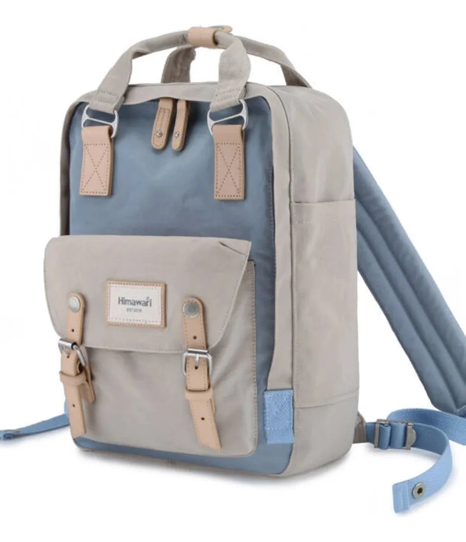 Mochila Bolso Himawari Urbana Legitima Color Celeste Y Gris