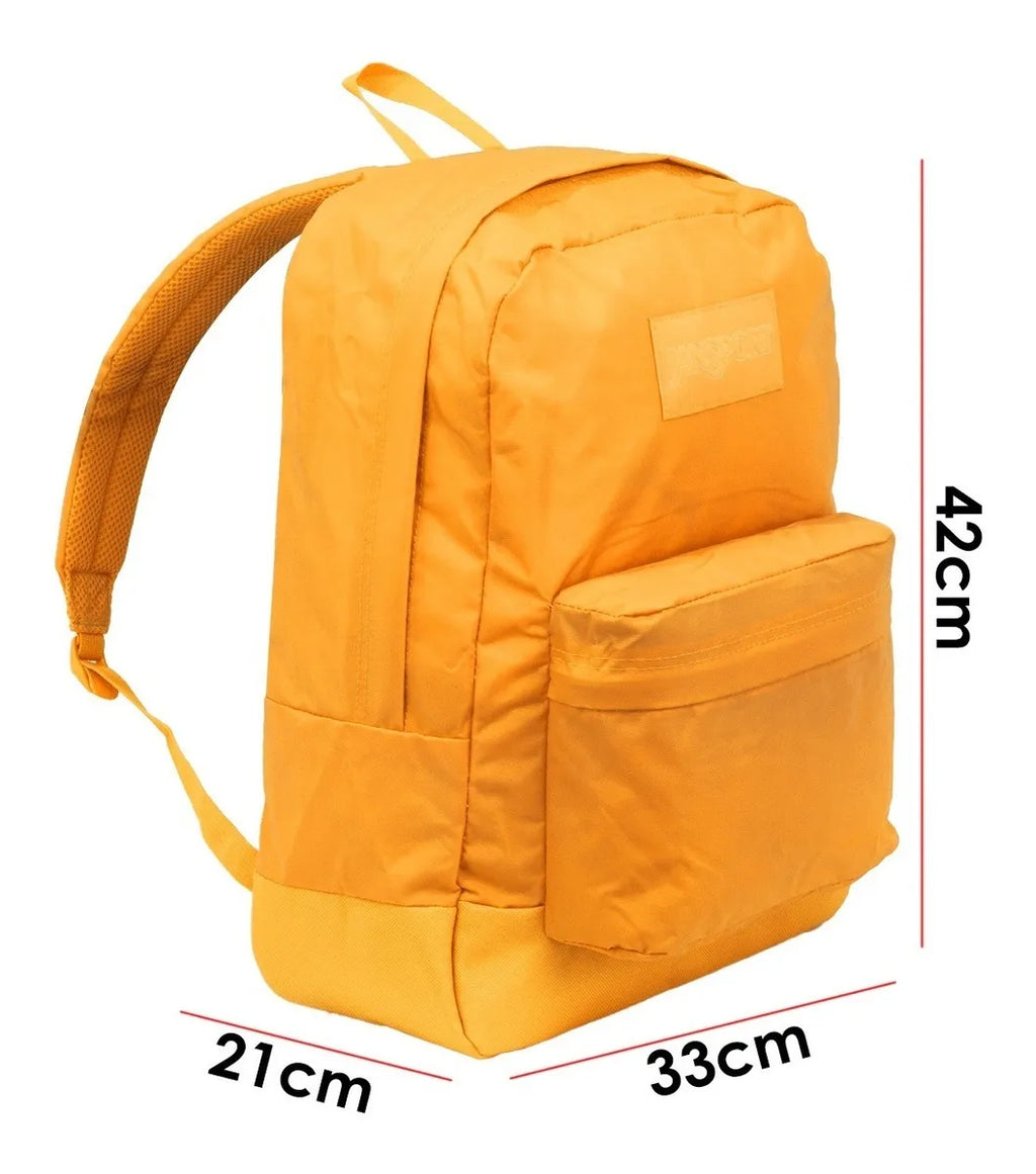 MOCHILA JANSPORT SUPERBREAK MONOCROMATICA Funda interna para laptop de 15" Premium Cordura Etiqueta monocromática Tiras de cierres de algodón Bolsillo delantero con organizador Correas de hombro de malla ajustadas. Capacidad: 26 L Dimensiones: 42 x 33 x 21 cm Peso: 0.3 Kgs Dimensiones laptop: 30.5 x 26 cm Materiales: Nylon Premium Cordura. Garantía de por Vida (CON EL FABRICANTE) Muestra tu verdadero color. La Mono SuperBreak es 100% monocromática, desde las correas hasta los adornos, te brinda una apariencia urbana, moderna y a la moda para donde quiera que vayas. Cuenta con tela duradera y base Cordura, un compartimiento principal con bolsillo para laptop de 15" y un bolsillo frontal con cierre.